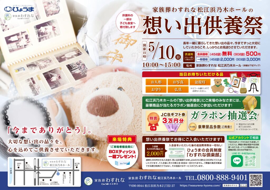 松江浜乃木ホール「想い出供養祭」開催のお知らせ